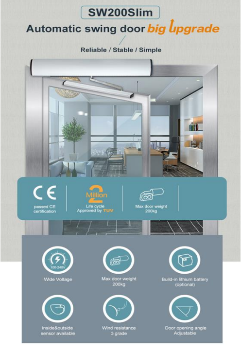 Cửa mở xoay tự động Artek SW200 là phiên bản nâng cấp mới với thiết kế mỏng, tinh gọn (SW200 Slim) – hoạt động ổn định, bền bỉ và dễ lắp đặt cho nhiều loại công trình như văn phòng, bệnh viện, nhà hàng, showroom, trung tâm thương mại…
