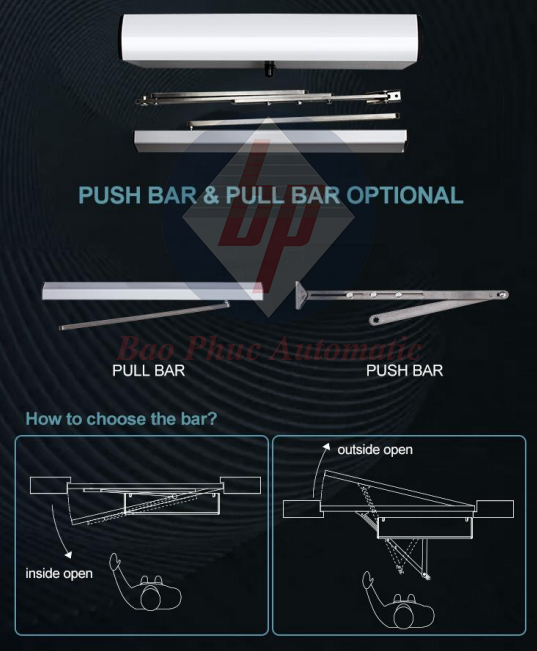 4. Tay đẩy cửa (Push bar / Pull bar) – Có 2 tùy chọn: